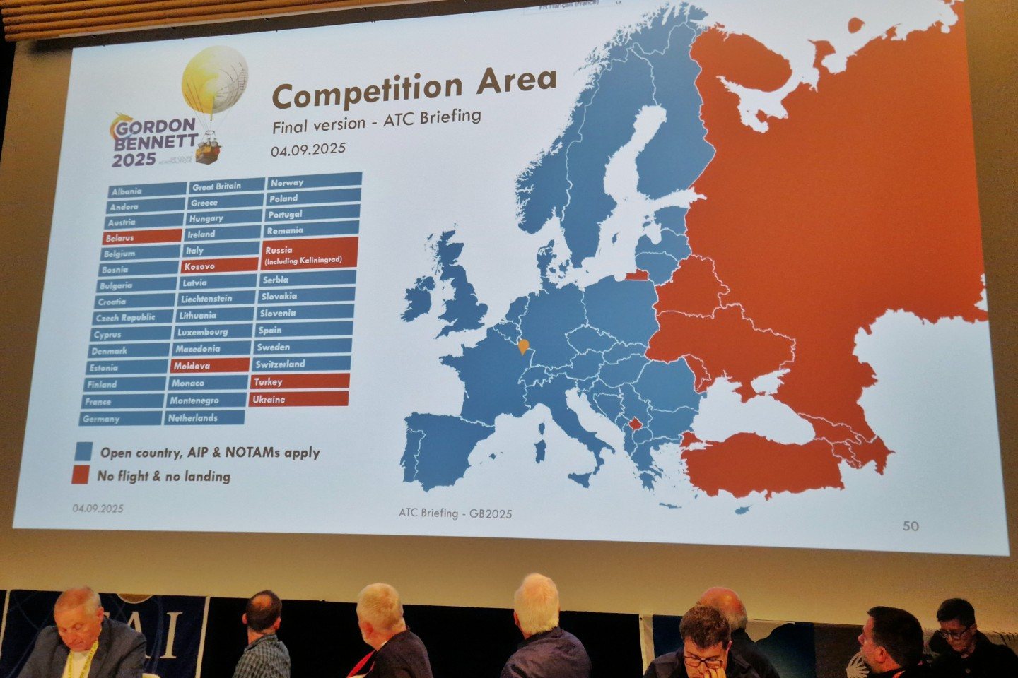 For several years now, the three gas balloon pilot couples of the German National Team have had a shared Command Center, consisting of five to ten people who continuously look after us and provide us with the necessary information. Their responsibilities include weather and strategy, of course, but also airspaces, air traffic control, restricted areas, and so on. Having said that, a very big thank you to our Command Center 2025, Max & Max, Marvin, Katharina, Mathis, Henrike, Ivan, and Andreas.