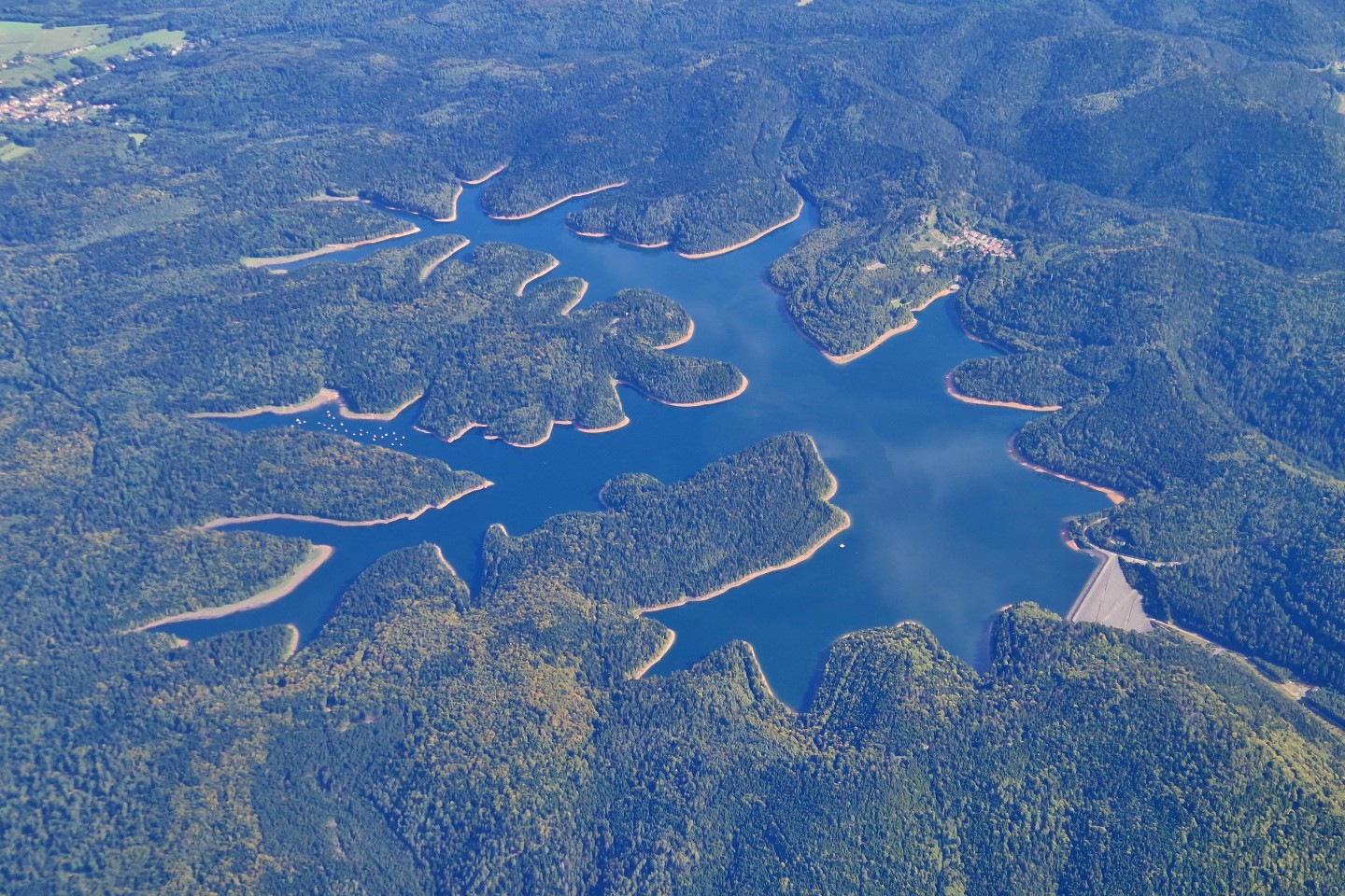 The distance should be enough to be ahead of the French, our Command Center tells us – now for a safe landing! But just as luck would have it, a large forest beneath us. To the left, in the distance, a big field, to the right, a forest track with a few clearings beside it… in the thermals, the direction of flight is indefinable. First, we head toward the field, then back onto the forest path. Peter and Timo, our brave retrieve, have realized our situation and are speeding along the track. If we throw our tow rope right over the track, it might work out! The two of them stop just in time, exit the van, we brush against a few branches, the tow rope rushes through the trees… Seconds later, we’re safely down on the track.
