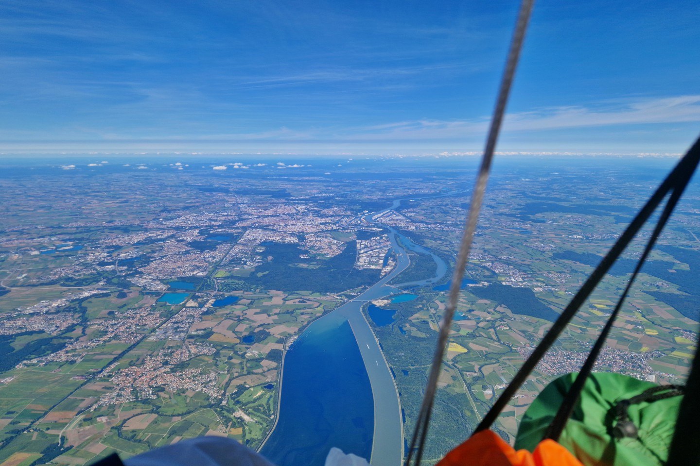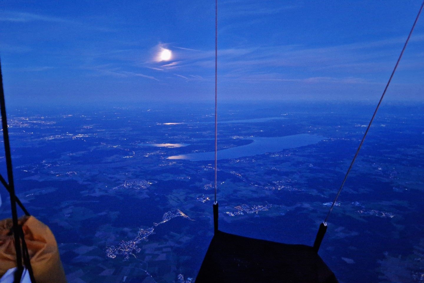 From Saturday morning on, our Command Center is regularly calling the Munich air traffic controllers to pave our way through the busy Munich airspace, which we should be reaching around 9 p.m. Meanwhile, we climb to around 4,000 meters to fly as southerly as possible and only touch the outskirts of said airspace. On other hands, the first day is quite relaxed: with perfect weather and a panoramic view of the Alps, we enjoy the familiar landscape below us, sparking many memories of past events – Horb with the Neckar Balloon Cup and British Nationals 2023 for example, or the Übersberg glider airfield with its many unforgettable editions of the BWLV Youth Airgames.