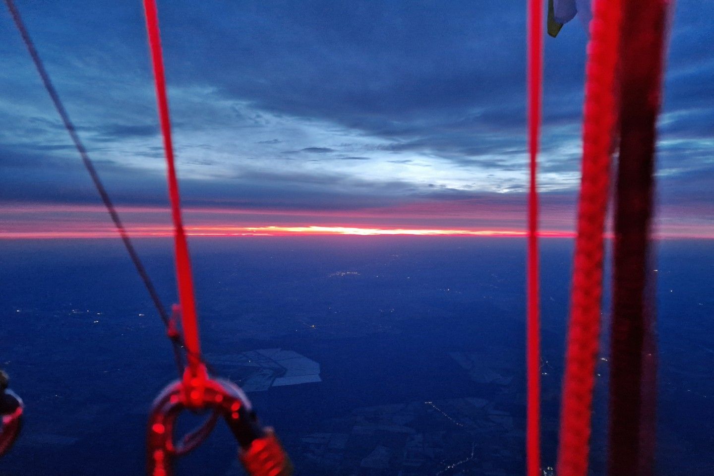 But spirits are high on board: We still have over 150 kilograms of ballast sand left. For the first time since participating in the Gordon Bennett Race, we feel like we can seriously compete at the front. The new lightweight basket, the radically trimmed down equipment, and, last but not least, Benedict’s diet, are paying off.
