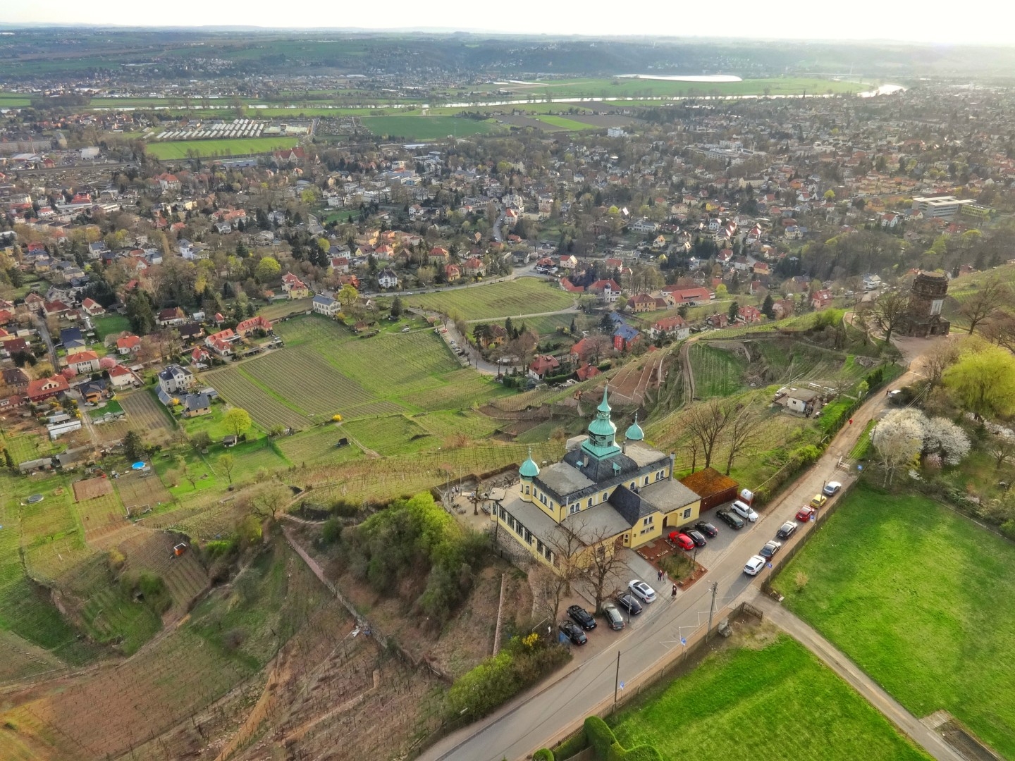 Last weekend, we spent some fabulous days with our friends from Dresden, where we managed to do two wonderful flights. The first one led us from their garden in Radebeul over the “Spitzhaus” and Moritzburg Palace with its many lakes.