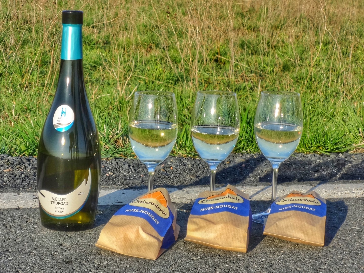 Our second flight last weekend led us in a north-westerly direction from Kaditz to Colmnitz, where we celebrated the landing with three croissants and a bottle of wine.