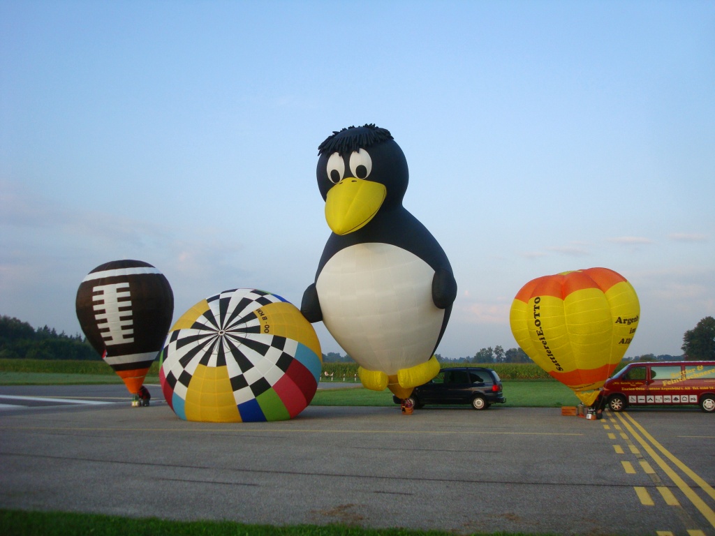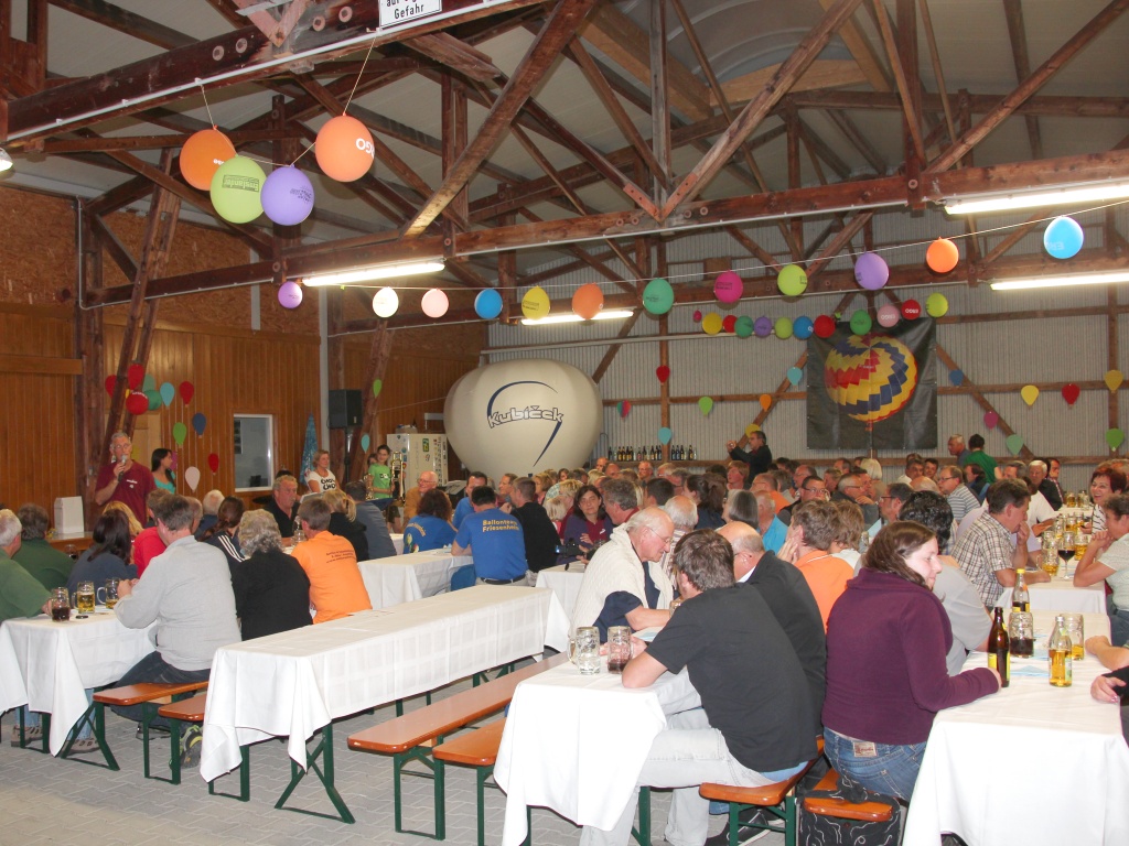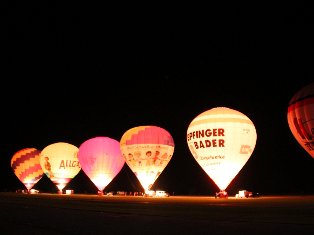 … was great fun again! A wonderful weekend with old and new friends, a nice night glow, a beautiful morning flight, model ballooning, a sporty supporting programme AND spectacular parties! The Balloon Club of Landshut celebrated their 30th birthday with a big roasted pig and Bavarian music, and the balloonists celebrated on the camp site with delicious liquors brought along by our Slovenian friends. Oh what a night! :-)
