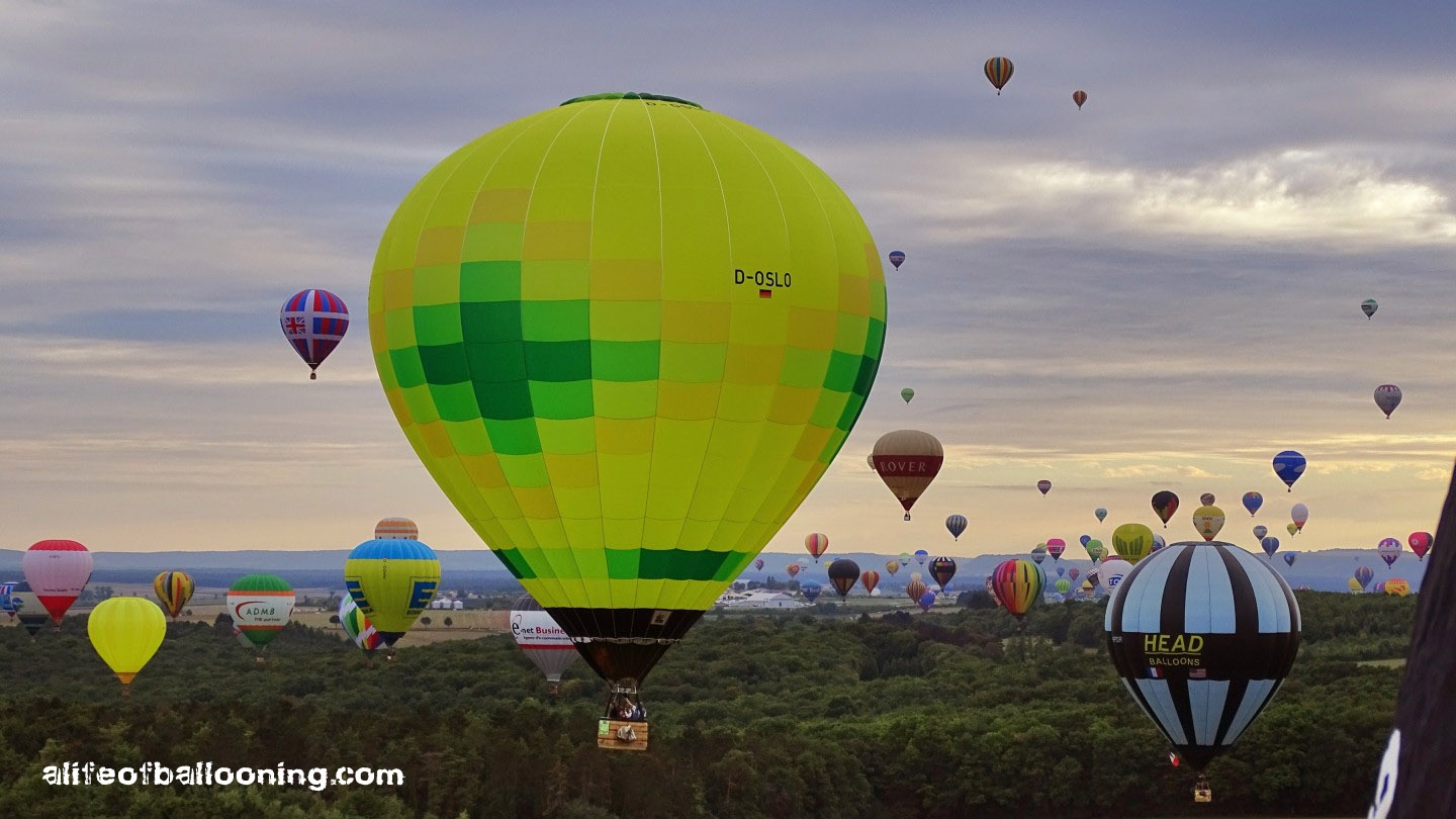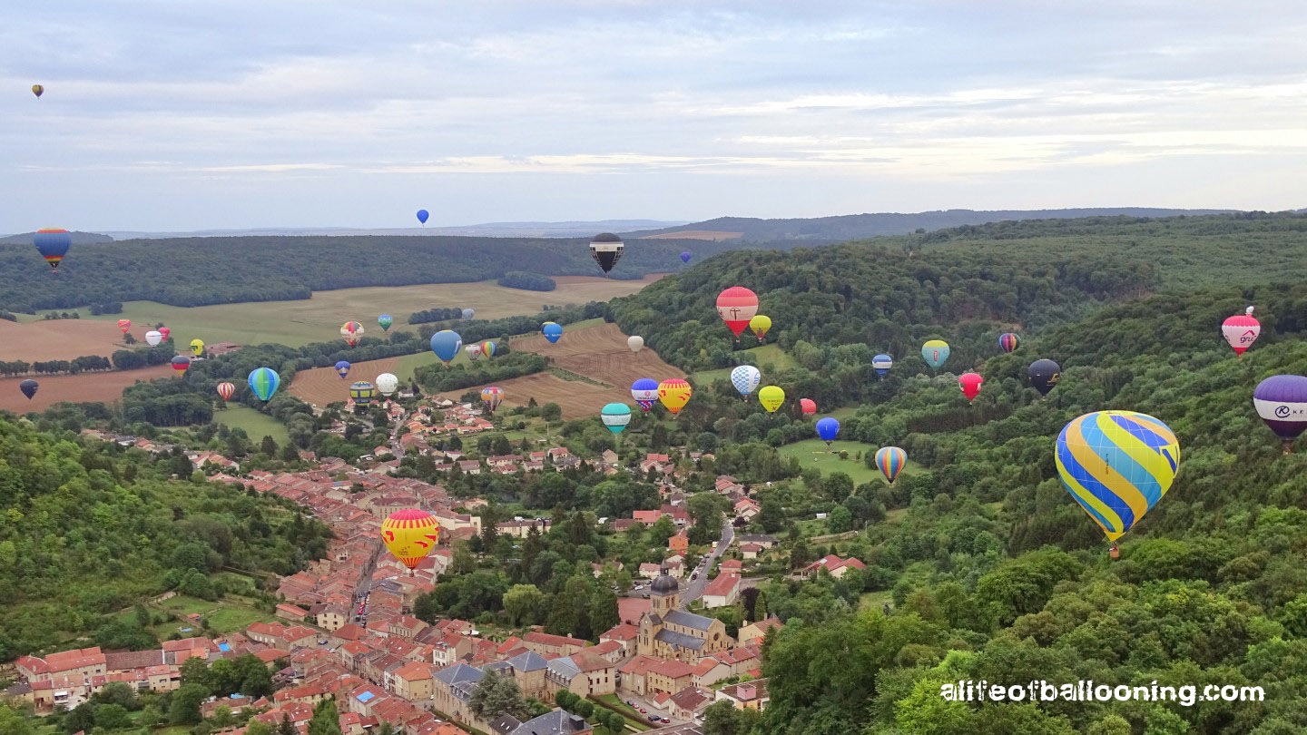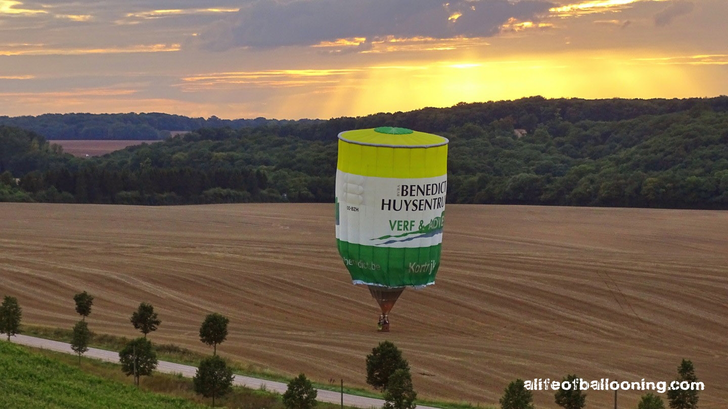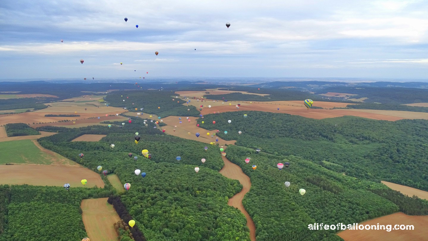 Friday evening finally promised at least a streak of sunlight for the flight – and there it was, beautifully colouring the western skies over Chambley Planet’Air. The balloons flew in an northeasterly direction towards the city of Metz, most of them landing near Gorze, but some of them – like us – also in the Moselle valley. Perfect evening! :-)