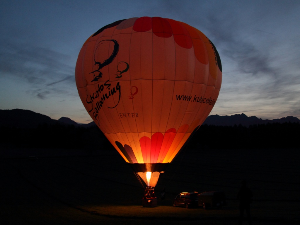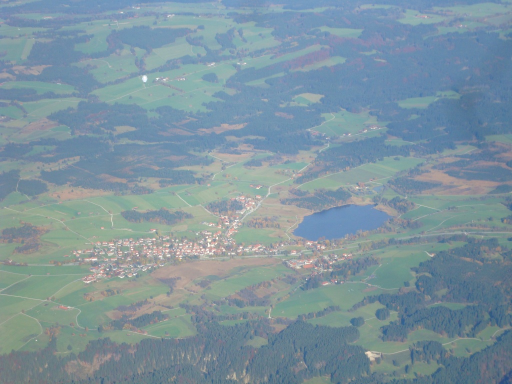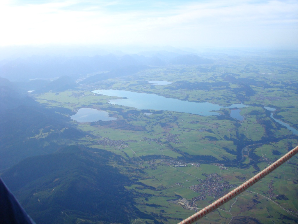 On Saturday, October 26th, weather was just perfect for a long distance flight along the Alps: Calm on the ground and speedy winds at altitude. So, we met at Seeg (near Füssen) with our friend Thomas, prepared our balloon with some extra tanks of propane and took off at 14 o’clock local time.