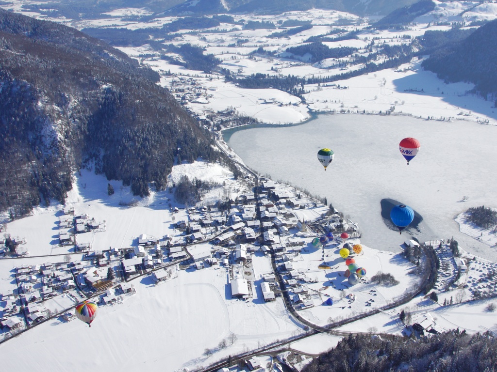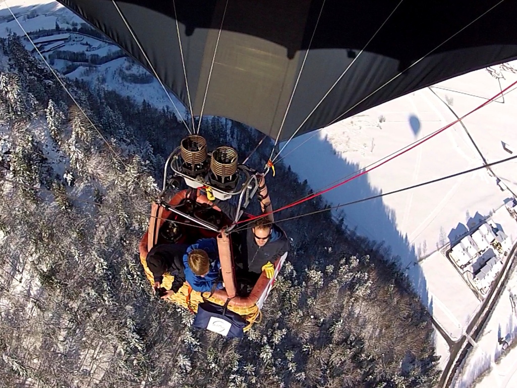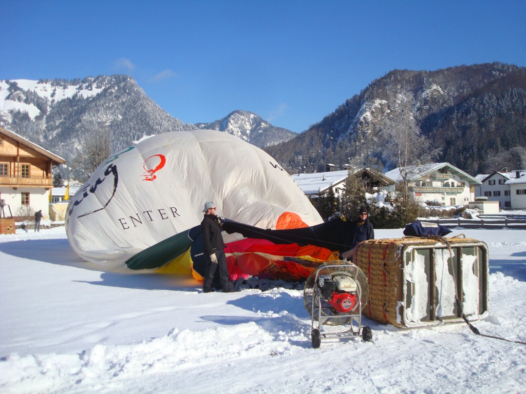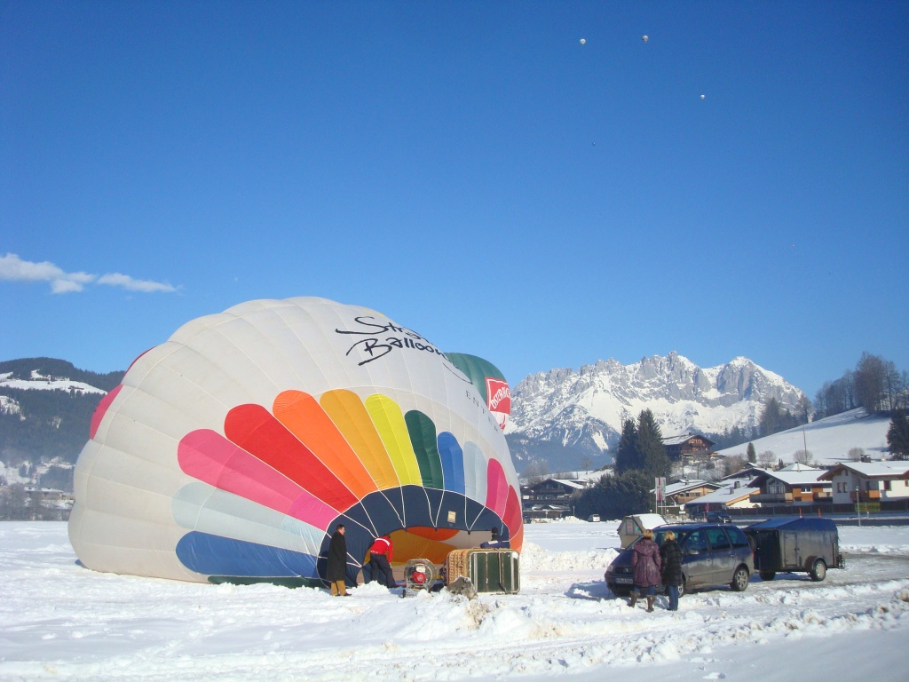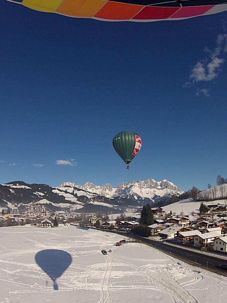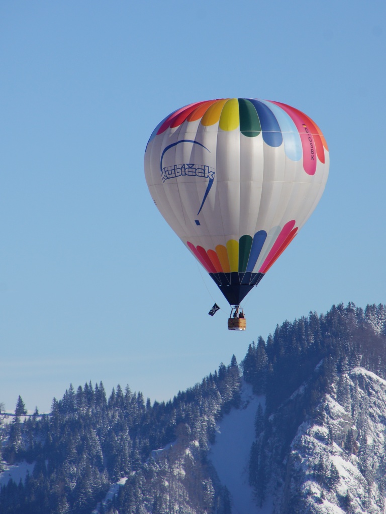 During the last week of January, we spent a fabulous time in Kössen / Austria, where we took part in the “13th Kaiserwinkl Alpin Ballooning”, one of the biggest winter meetings in the Alps with over 50 balloon teams. Weather was not that good at first, but we braved the snowfall and took part in the opening parade with our fully rigged basket nevertheless!