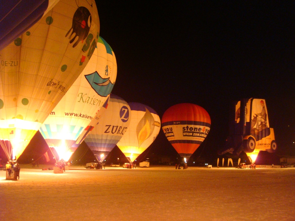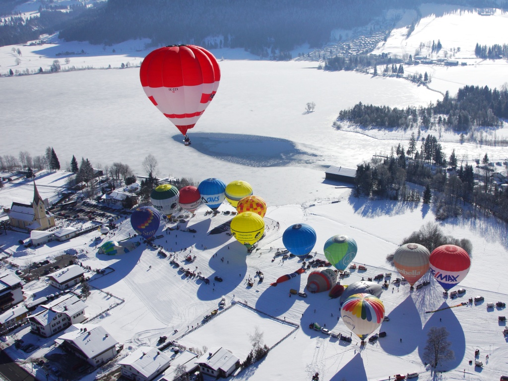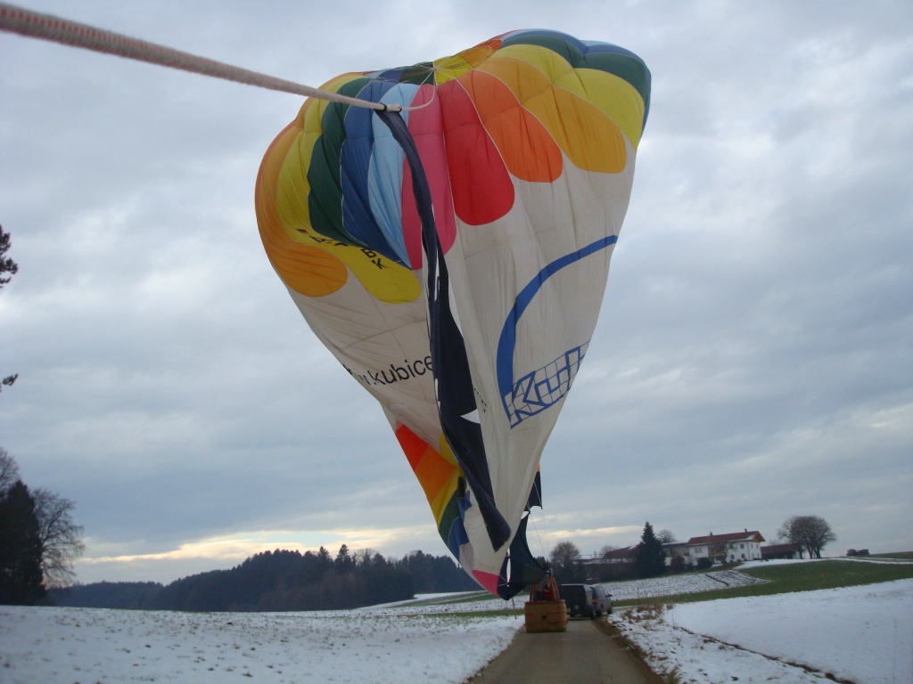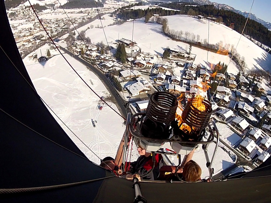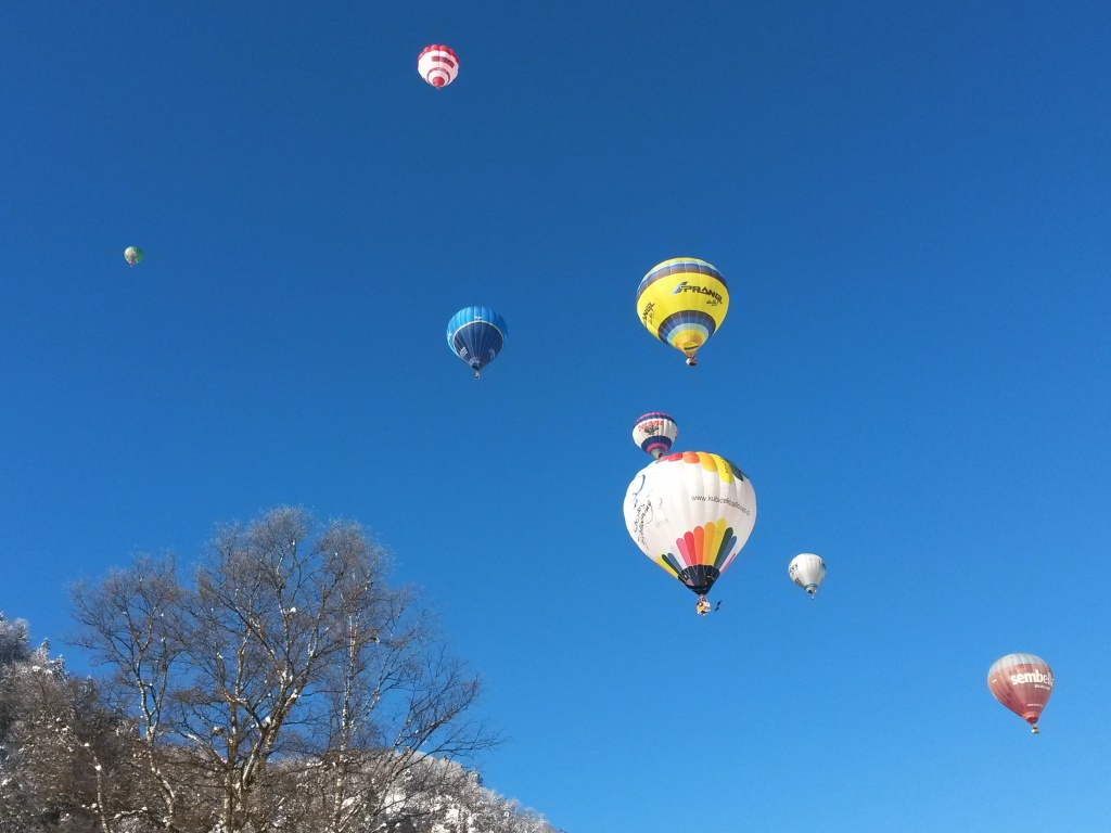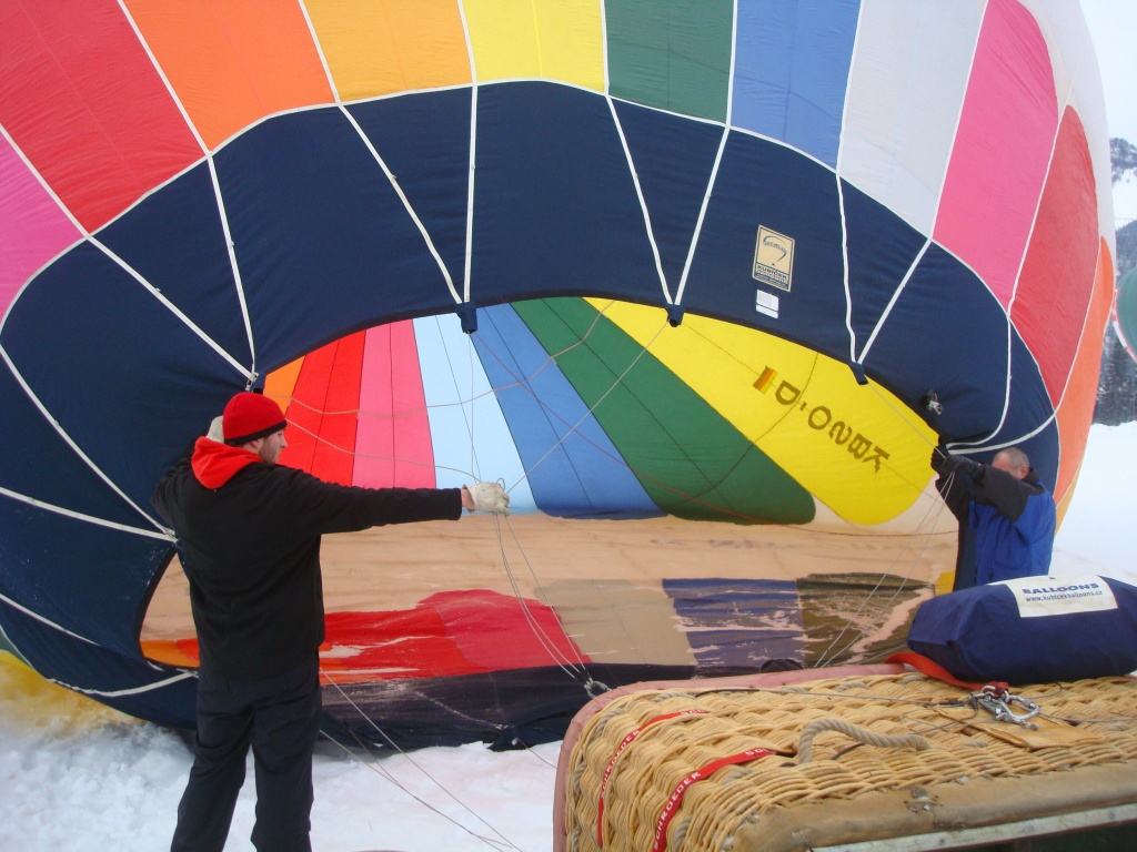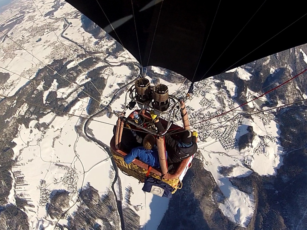 During the last week of January, we spent a fabulous time in Kössen / Austria, where we took part in the “13th Kaiserwinkl Alpin Ballooning”, one of the biggest winter meetings in the Alps with over 50 balloon teams. Weather was not that good at first, but we braved the snowfall and took part in the opening parade with our fully rigged basket nevertheless!