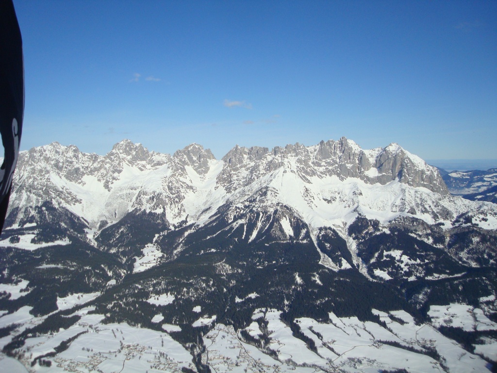 The big finale was our flight above the “Wilder Kaiser”, the rough, impressive mountain the “Kaiserwinkl” got its name from. When we flew out over Lake Chiemsee, the weather was so fine and warm that we stripped right down to our t-shirts!