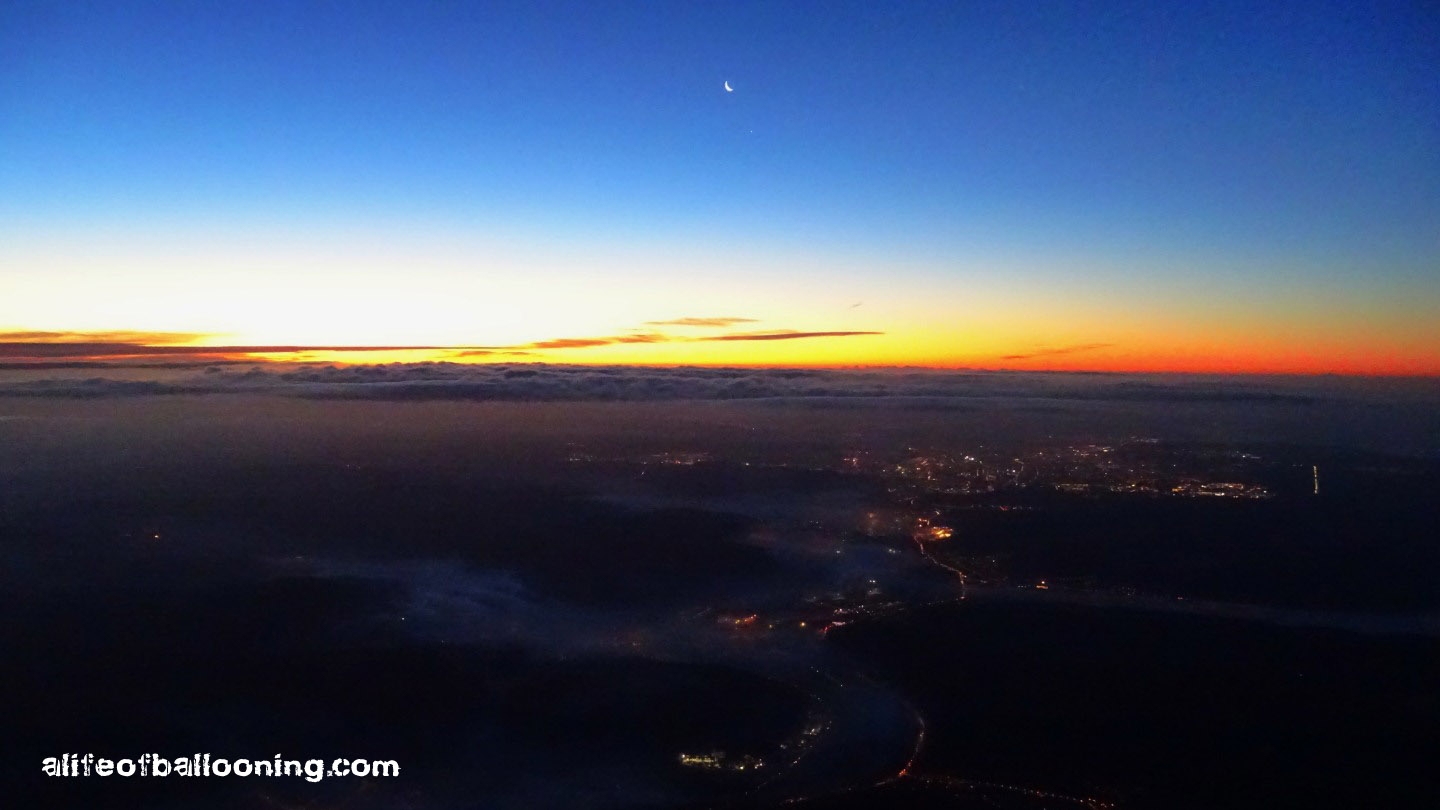 So, on January 1st, we packed our stuff, drove to Gladbeck on January 2nd and took off there in the evening. The busy airspaces of Düsseldorf and Cologne pretty much defined our launch time at half past eleven. The winds took us southwards to France, where the cold night eventually found it’s end with a beautiful sunrise near Nancy. The rising sun spread a wonderful warm light, and we could even see the majestic scenery of the Swiss Alps in the distance.