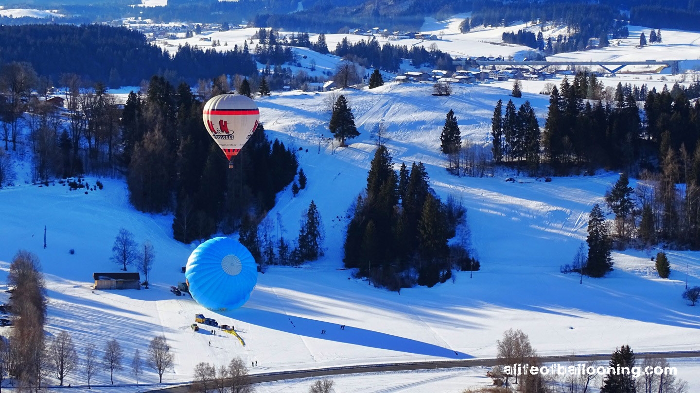 We’re just too busy at the moment! So here are some pictures from one week ago… lovely winter flying with Bavaria Ballonfahrten and Kubicek Balloons Deutschland alongside the all new BB120P “Allgäuer Büble Bier” balloon. There are worse things than working on a Saturday… ;-)