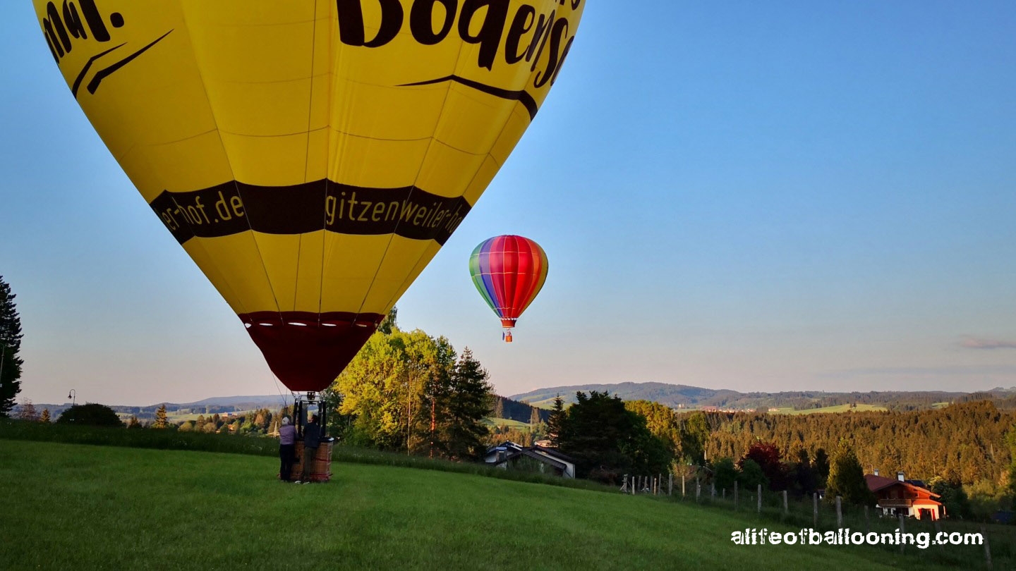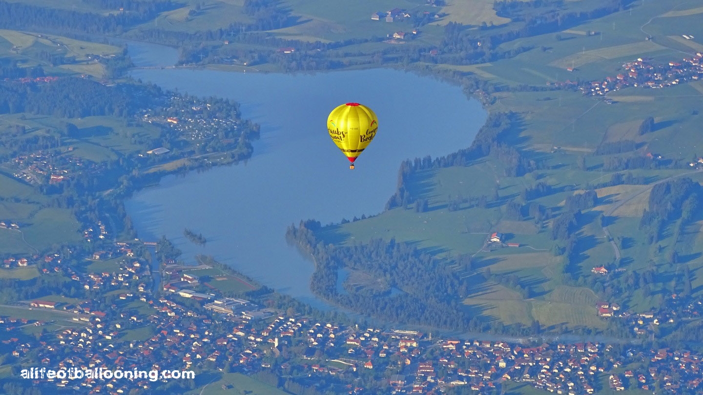 Sunday evening brought another chance for flying, after it had finally cleared up during the afternoon. Fabulous hop alongside the Gitzenweiler Hof Balloon from Seeg to Lechbruck.