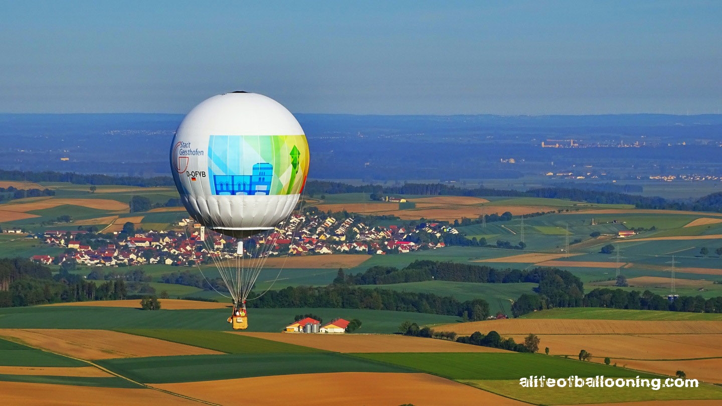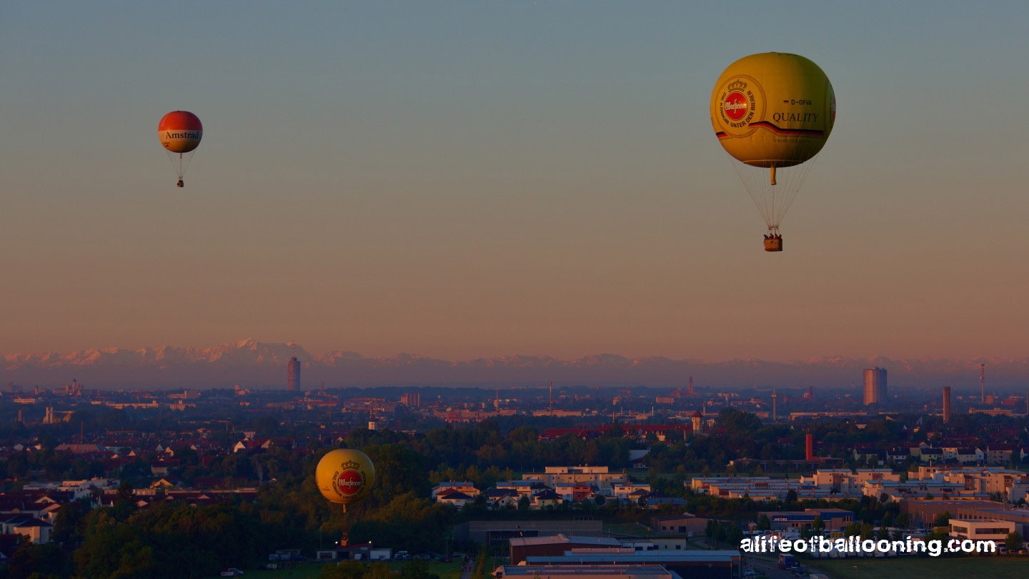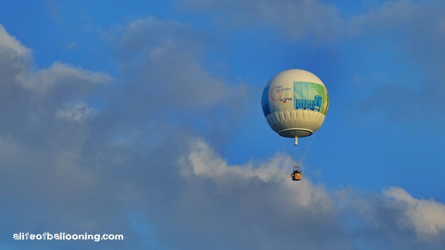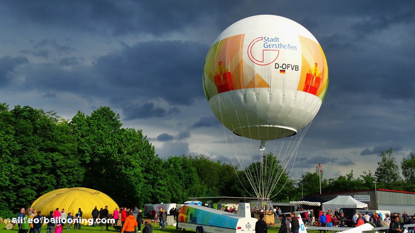 Every year in May, the Balloon Club of Augsburg holds a gas balloon meeting with about ten balloons, following a long tradition of gas ballooning in the towns of Gersthofen and Augsburg. In 1931, Swiss physicist Auguste Piccard and his engineer Paul Kipfer launched there to be the first men in the stratosphere – in a 14000 cubic meter hydrogen balloon!
