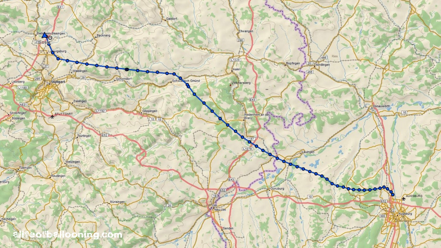But even with these two flights, we didn’t have enough. As winds from the east were predicted for Sunday, we soon had developed the idea to fly our balloon home to Stuttgart – and that was just what we did!
