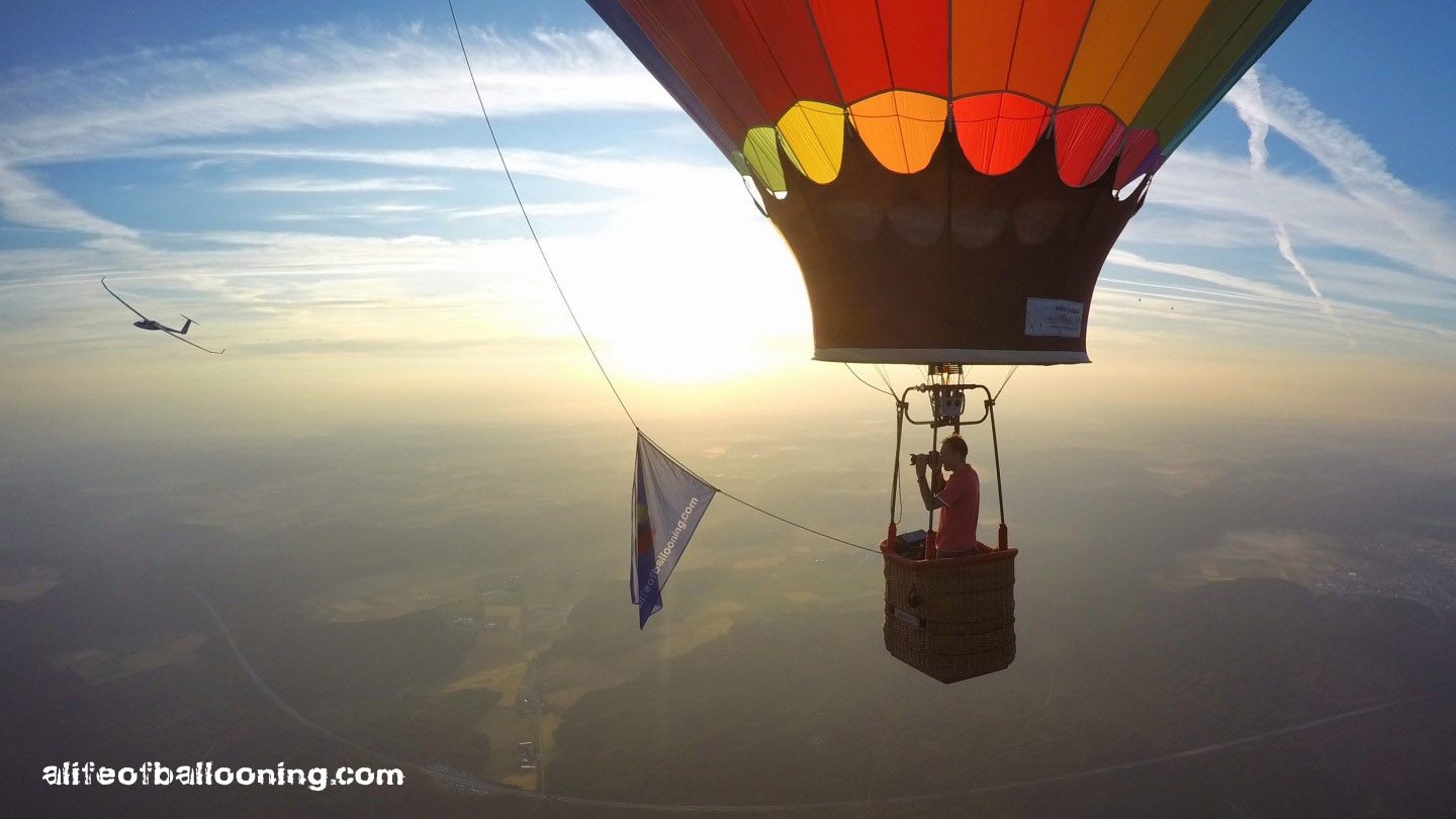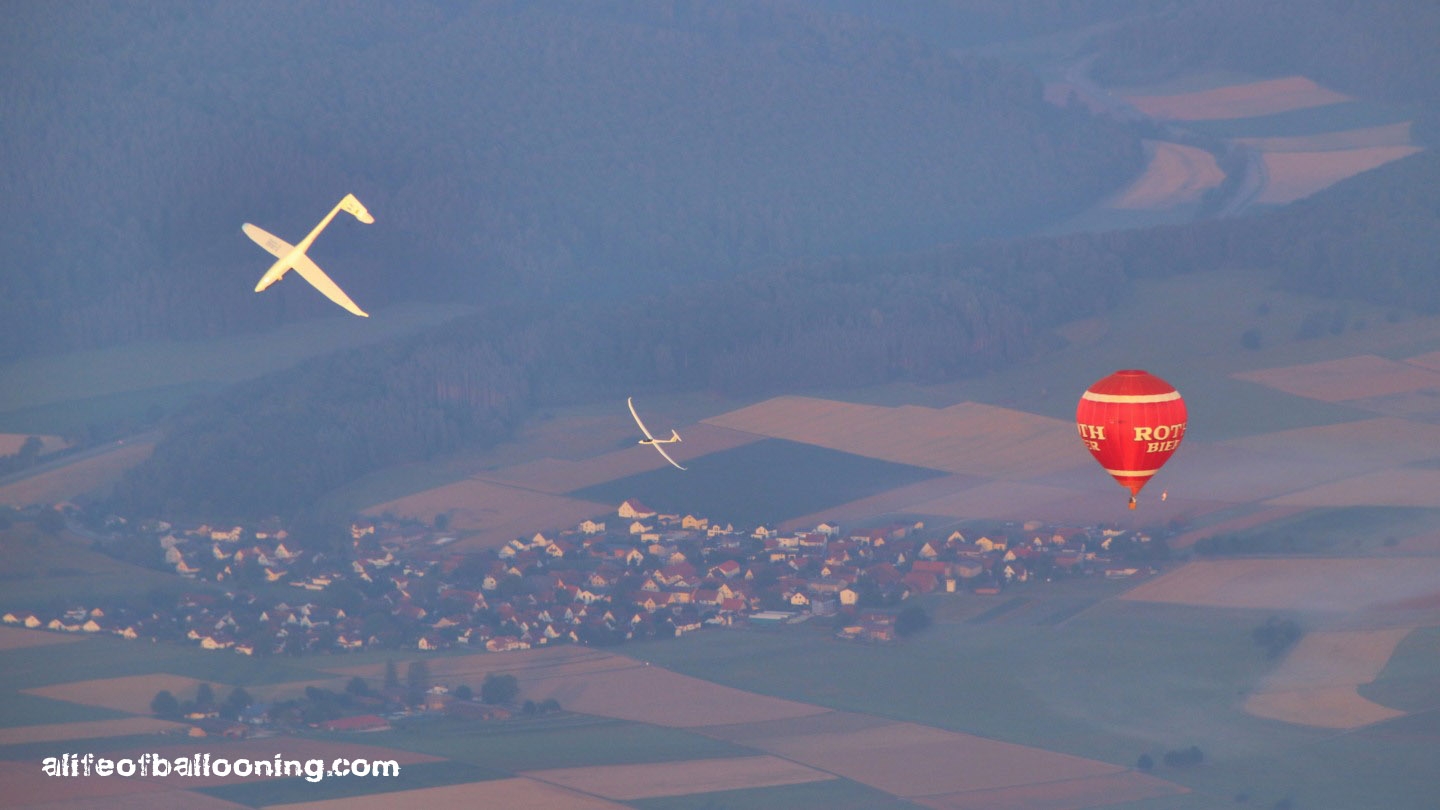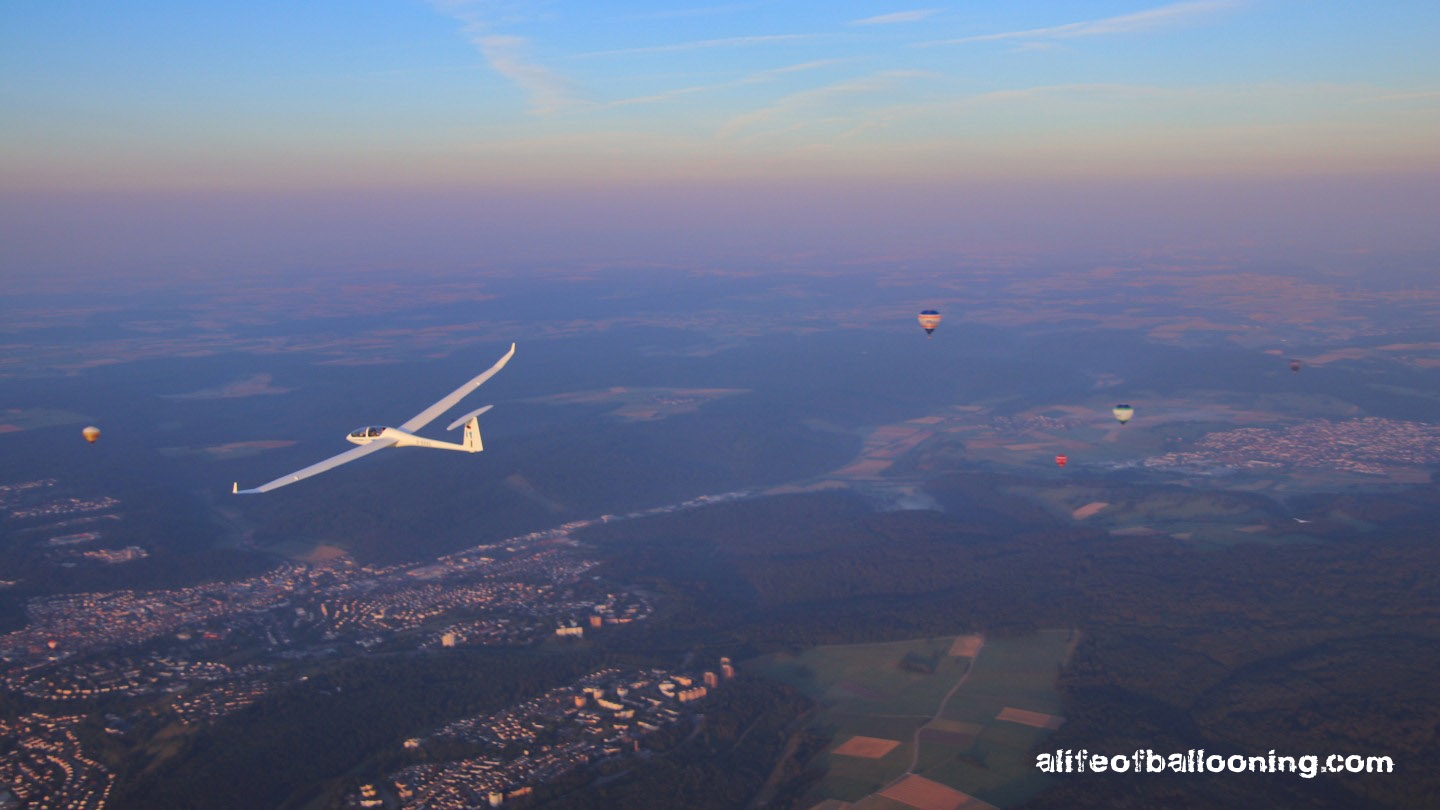 Past weekend, we visited the Friendship Balloon Meet of the Ballonsportclub Hellenstein e.V. at Heidenheim. Weather allowed one flight, however, the aerial meeting with the glider plane club Fliegergruppe Giengen e.V. at sunrise made this morning a true highlight! :-)