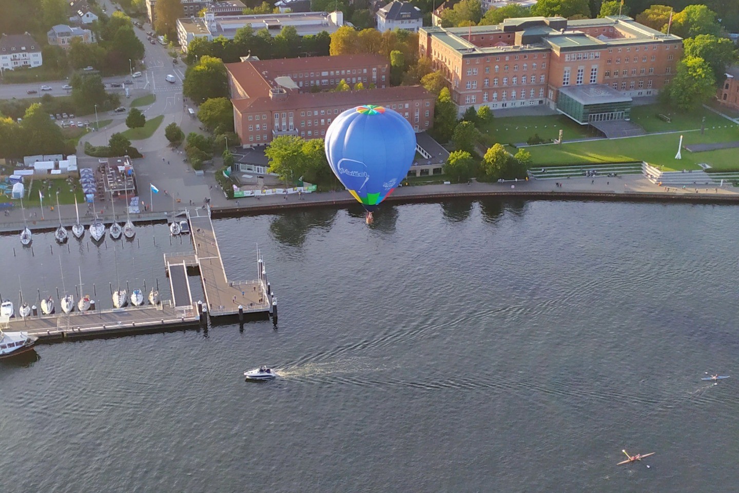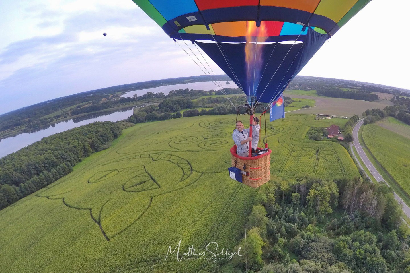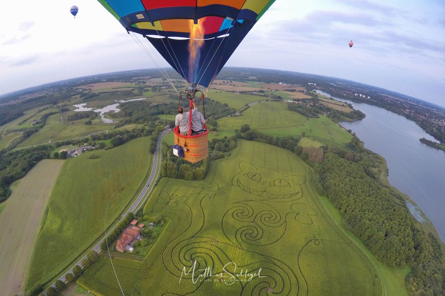 After a break of two days, weather was flyable again on Thursday evening at the Kieler Woche – our fourth flight there! The fifth and last flight followed on Friday evening, leading us over the Cheshire Cat, a giant maize maze near Sieversdorf south of Kiel. On Sunday, we embarked on our way back home, our heads and hearts full of new memories :-)
