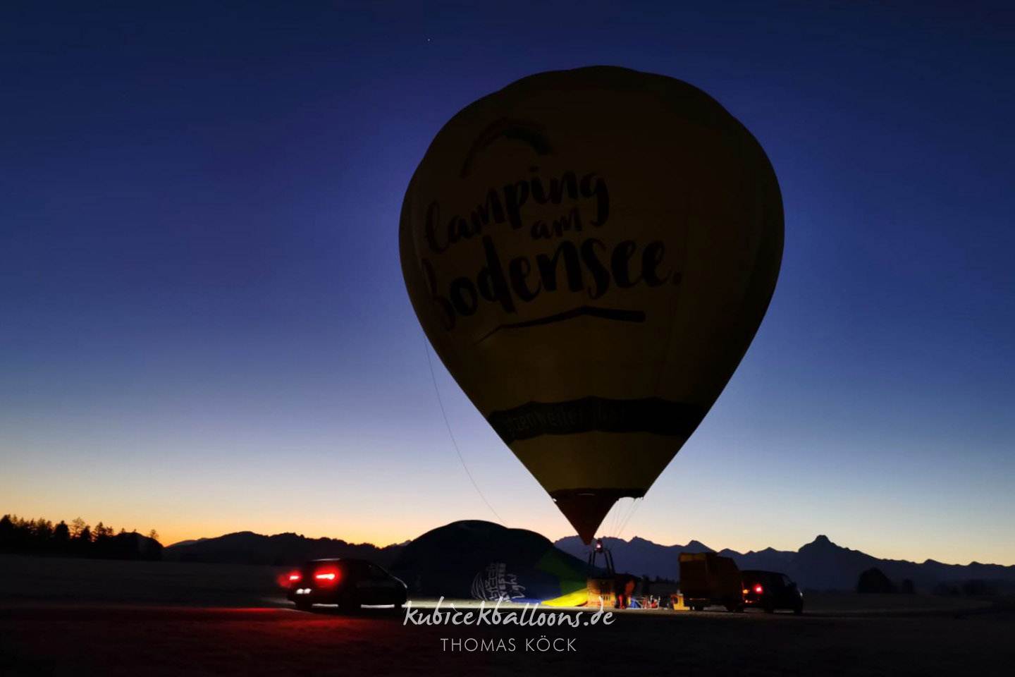 With the sun sinking lower, all the steering tactics had worked out: The balloon was hovering over a wide, free area with lots of meadows and no powerlines, winds were low, retrieve was there and the consumption had dropped to an amazing 0.2 L/min. With the remaining 8 liters, I could have gone on for another 40 minutes – but 10 minutes after sunset, with retrieve right beneath me, I chose to end the flight, so we would not have to pack the balloon in complete darkness. All’s well that ends well! :-)