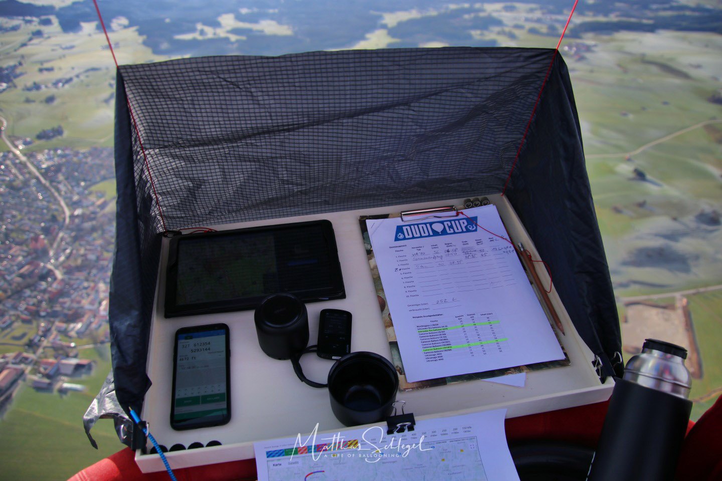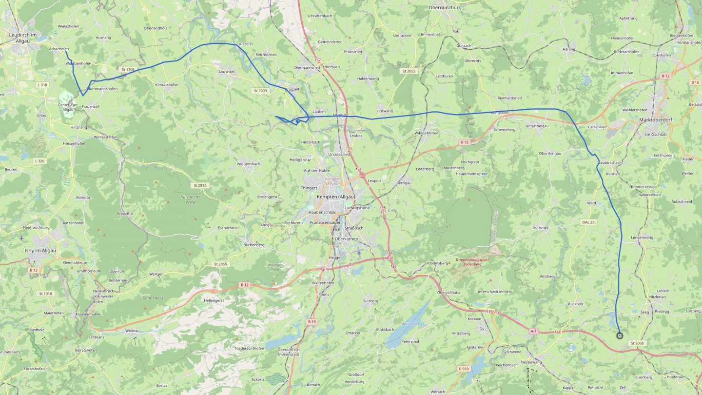 Later on, we had to climb a bit to get a different direction – continuing low would have brought us to Memmingen Airport, which we wanted to avoid to be free in our choices in later stages of the flight. But still, consumption was below 0.5 L/min – an extraordinary performance of the Kubicek Lightweight Polyester.