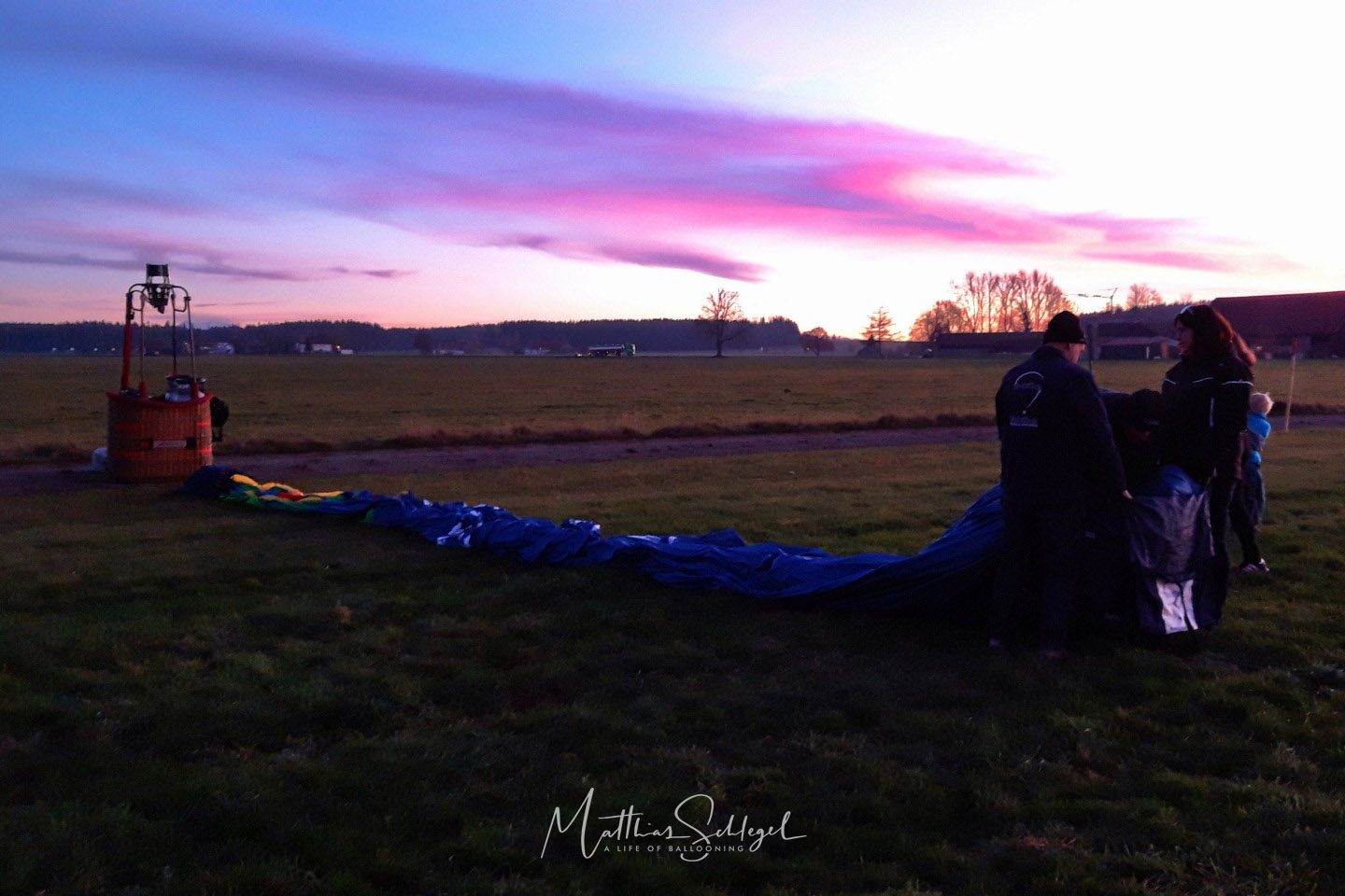 What better to celebrate this day in the air? The weather forecast in our area was perfect; cold temperatures, low winds, no fog. Both our longest hot air balloon flights with over 7 hours had taken place back in 2017, so the idea was to see if that could at all be topped. Necessarily, the launch had to be the earliest possible… so at half an hour before sunrise, we took off.