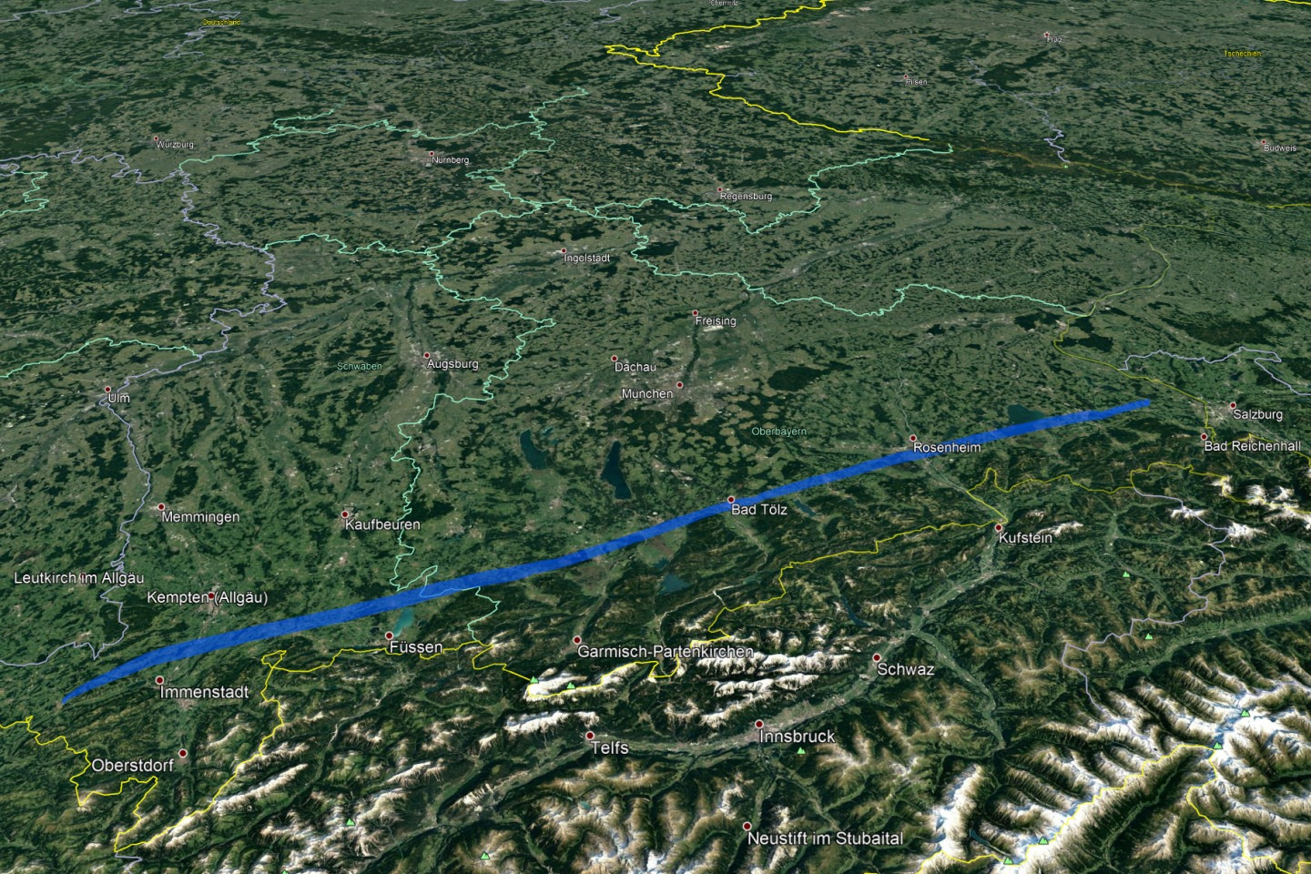Flying past Bad Tölz, Rosenheim and Lake Chiemsee, I regularly checked the wind directions in lower altitudes and corrected my heading when needed. But most of the time, I was very pleased how things went.