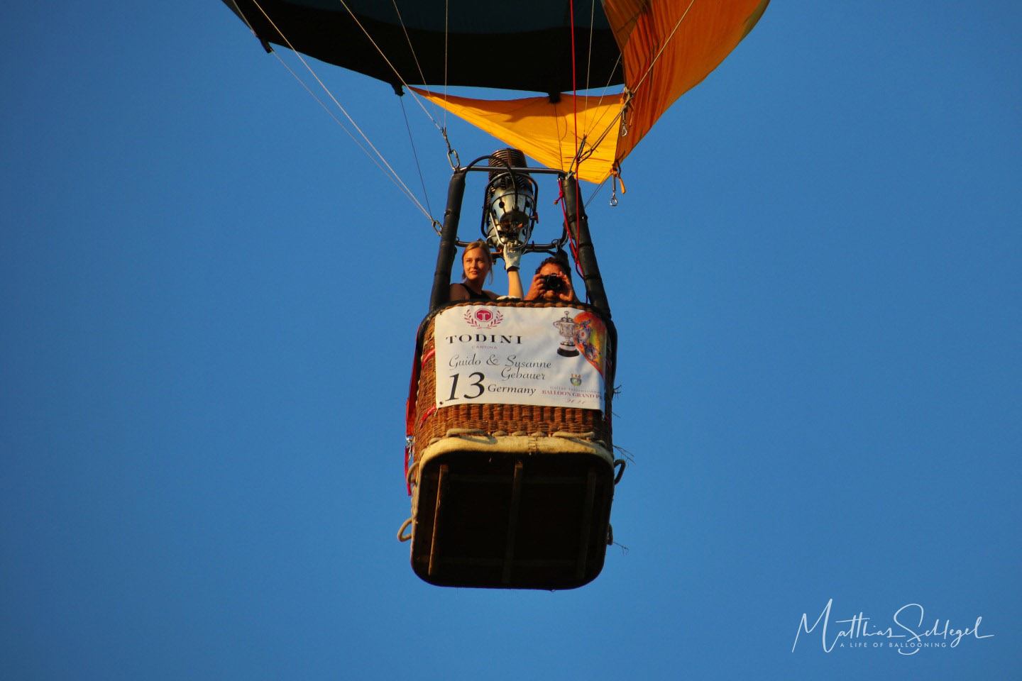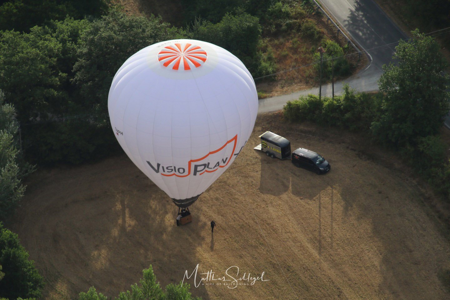 Even more astounding is the fact that we did all the flights without a retrieve, every time finding another team who was friendly enough to take one of us back to the launch site to pick up our car. Two times, a pilot who did a shorter flight took our car along after his return, and one time a crew gave us a lift fitting even our balloon in their trailer! So thank you Team Strasmann, Himke & Dominik from H2 ballooning, Jörg von der Burg, Monica & Petr Kubicek and of course Amelie & Louise :-)