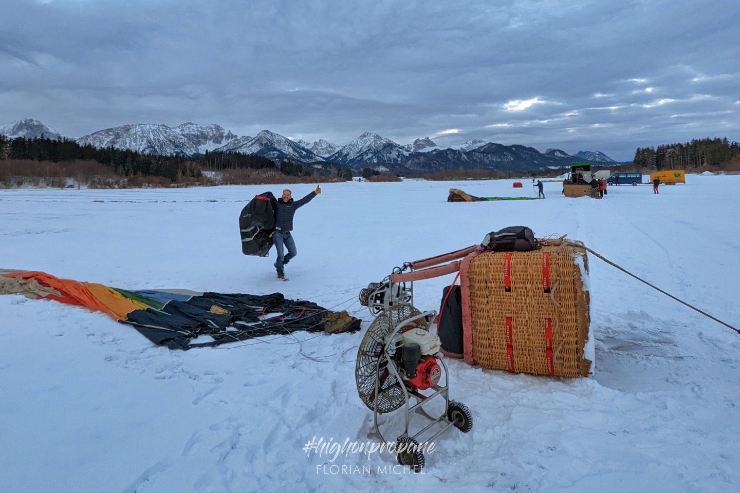So, we teamed up with two balloons from Bavaria Ballonfahrten and one from Ballonfahrten Chiemsee, and took of from Füssen glider airfield at 8 o’clock in the morning.