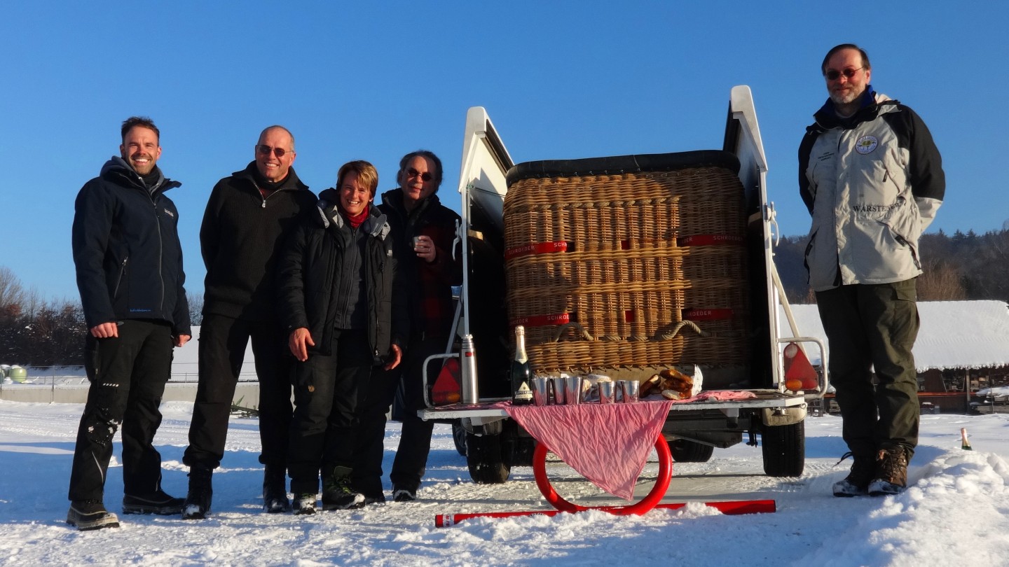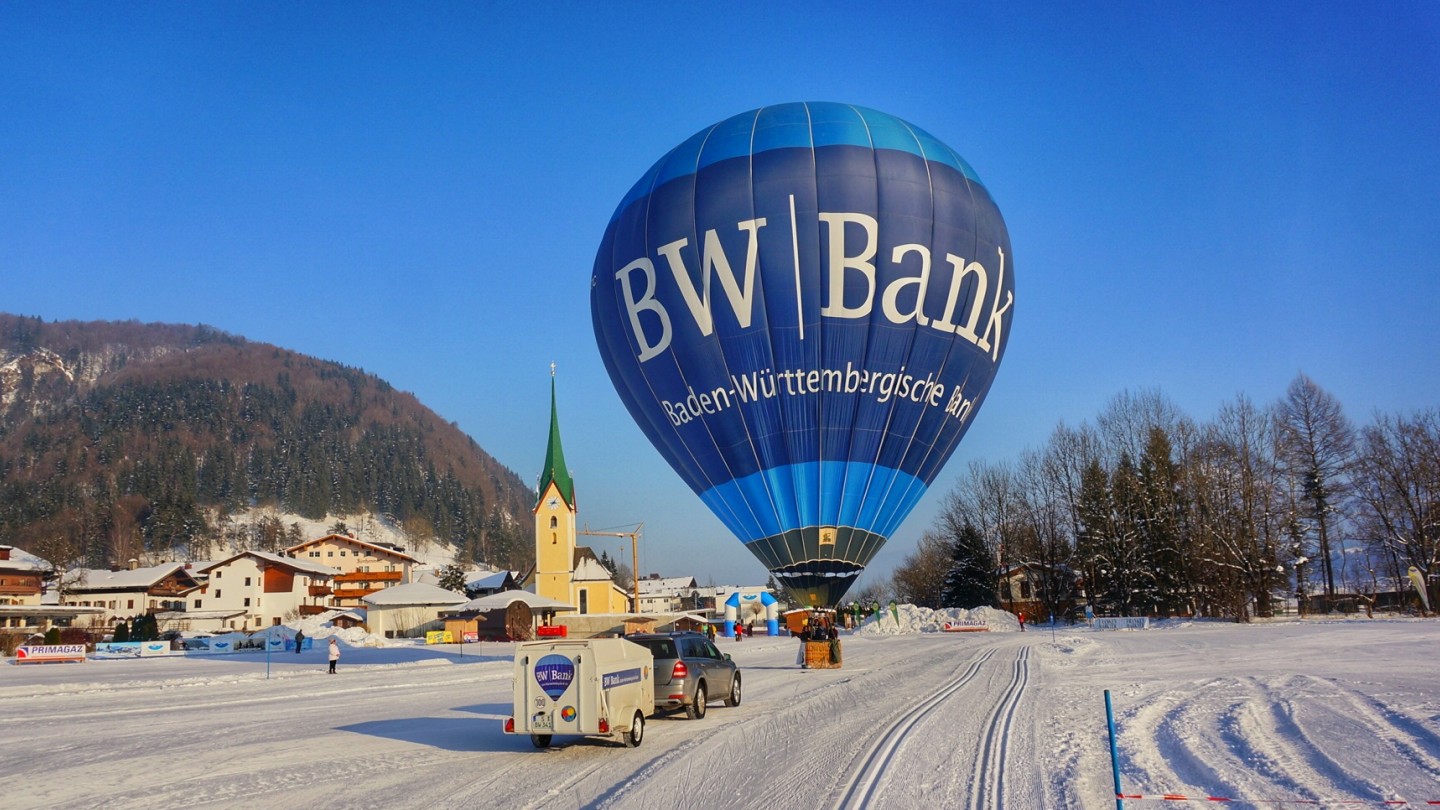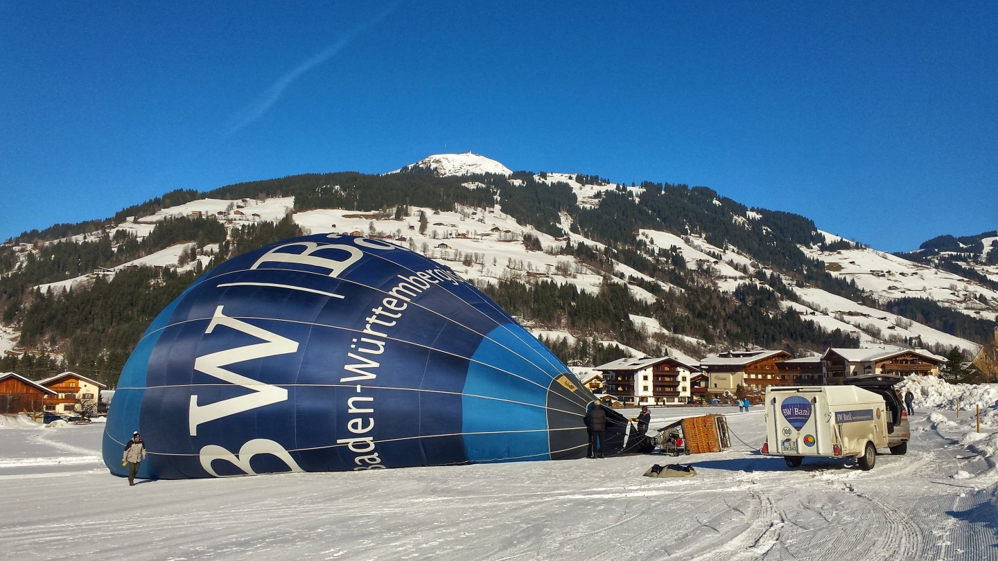 In the last week of January, we teamed up with some friends from Stuttgart to visit the “Kaiserwinkl Alpin Ballooning” at Kössen/Walchsee in Austria – and the weather couldn’t have been better! Two nice hops along the valley and two spectacular flights from Westendorf over the “Wilder Kaiser” out into the “Chiemgau” left nothing to be desired. Winter flying at it’s very best! :-)